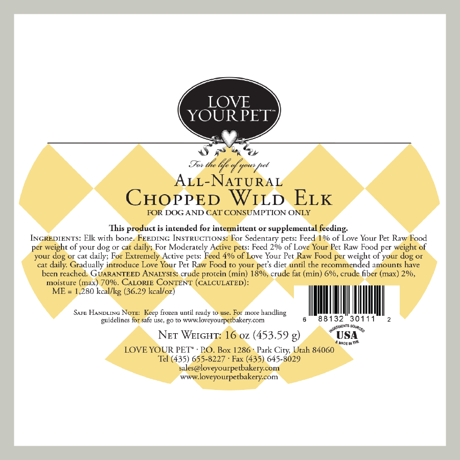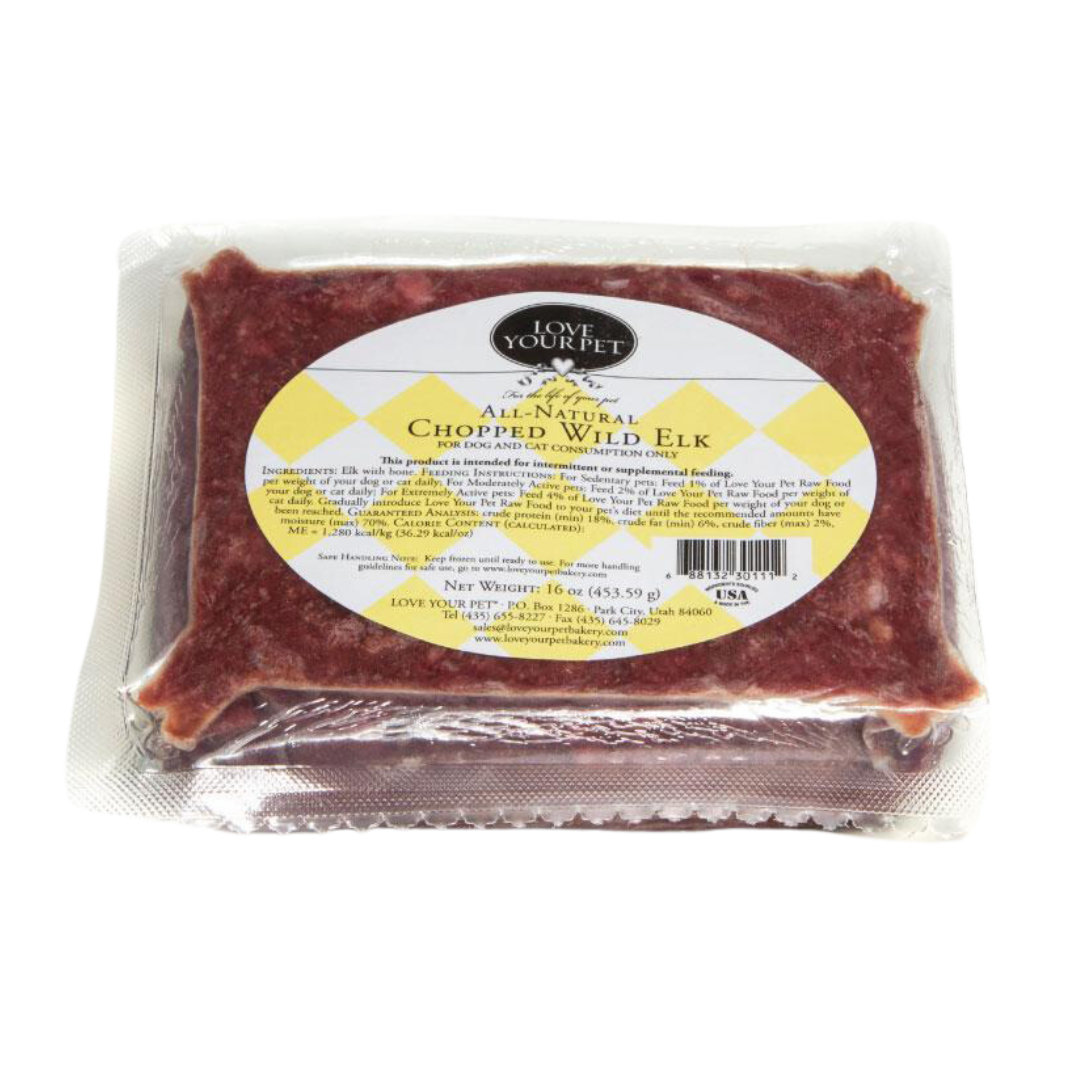 Feeding your dog or cat a wild diet of elk will limit exposure to added growth hormones and antibiotics that are present today in most farm-raised meats. Available in 16-ounce packages.