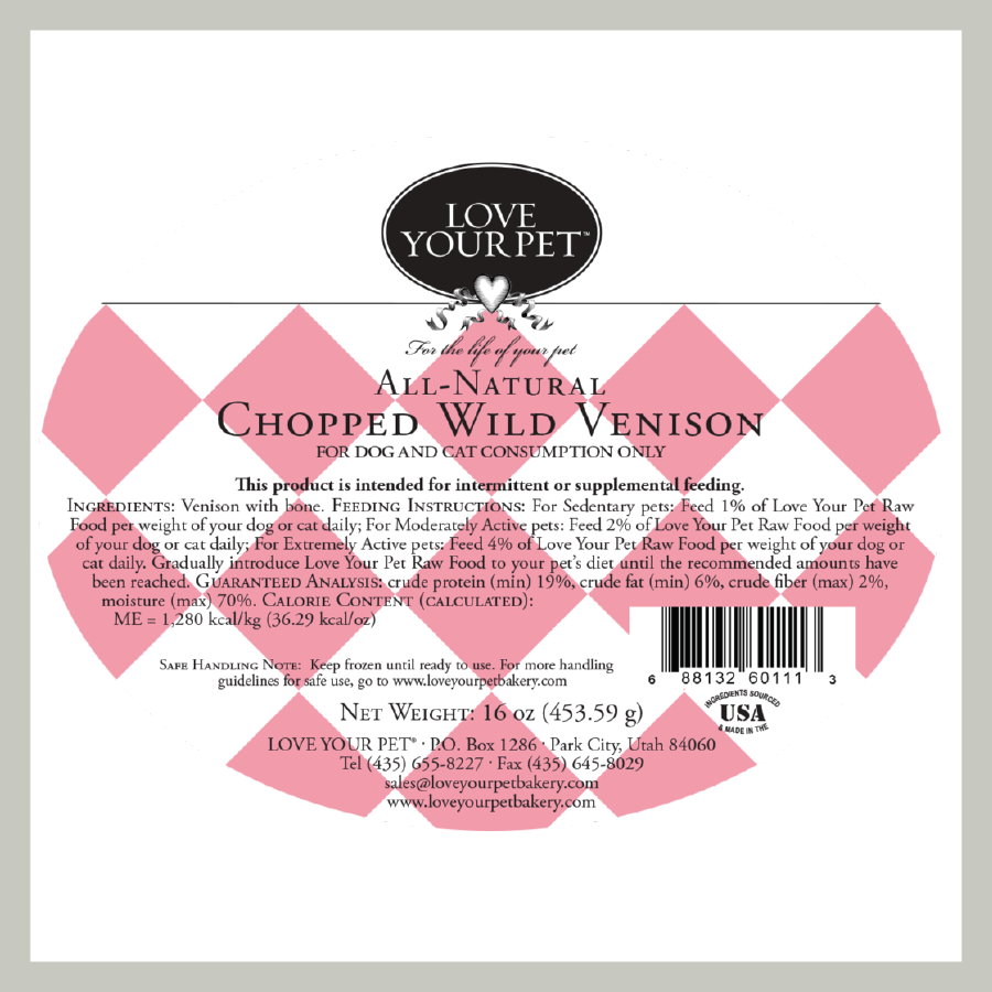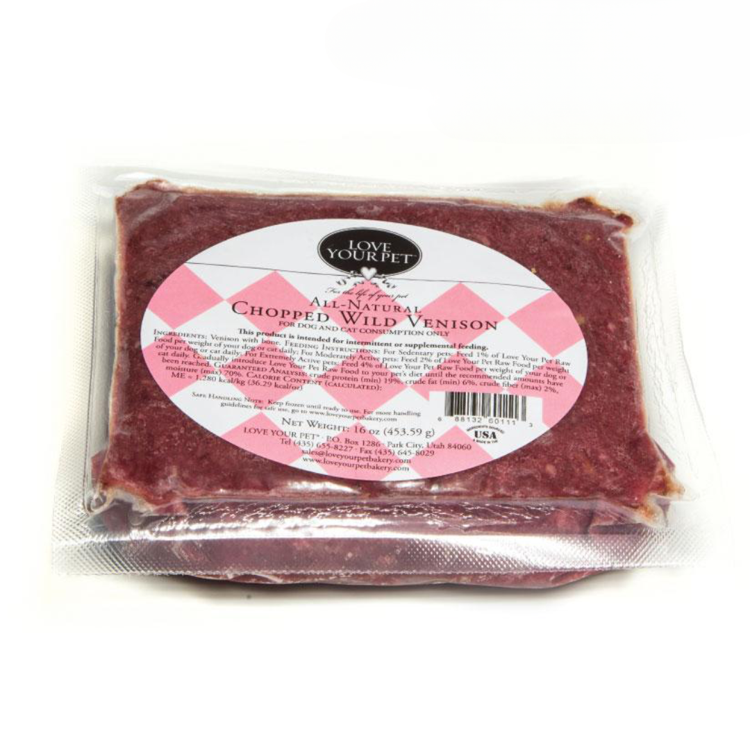 Feeding your dog or cat a wild diet of low-fat venison will limit exposure to added growth hormones and antibiotics that are present today in most farm-raised meats. Available in 16-ounce packages.