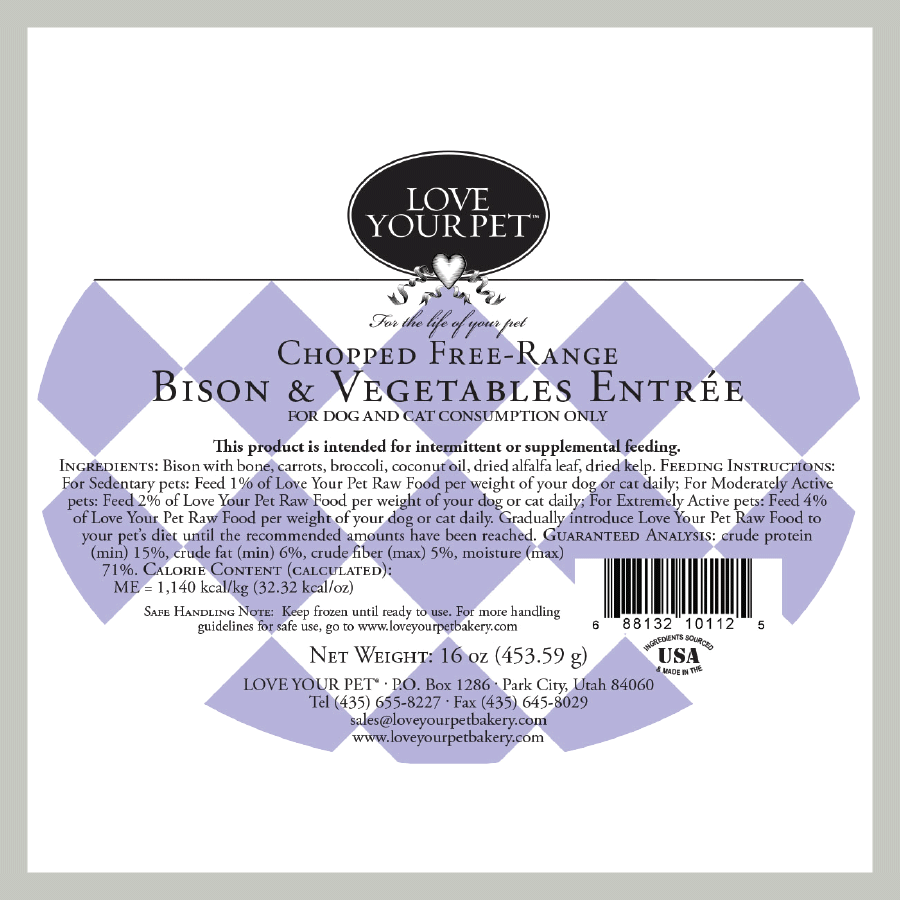 We are experiencing supply chain constraints that affect our supply of Bison with Vegetables until January 15th, 2023. Free-Range Chopped Bison will be the substitute for Bison with Vegetables until then.
