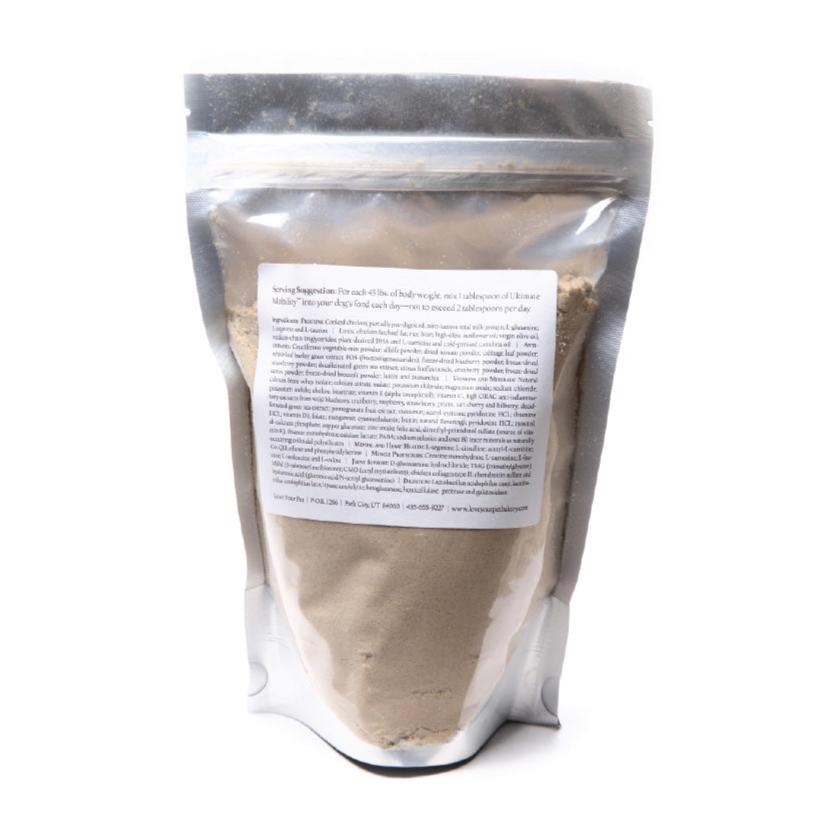 Available in a tasty powder form that picky eaters love, Ultimate Mobility™ is easy to mix into your dog’s daily meals. Just one tablespoon per 45 lbs. of body weight provides powerful daily support for hips, joints, and cartilage health. Great for young dogs developing strong joints, active adults needing maintenance, and aging dogs struggling with stiffness — this is the joint supplement you’ll keep coming back to. Choose from a convenient 1-pound bag (50 servings) or 4-pound bag (200 servings) to keep your dog moving with ease.